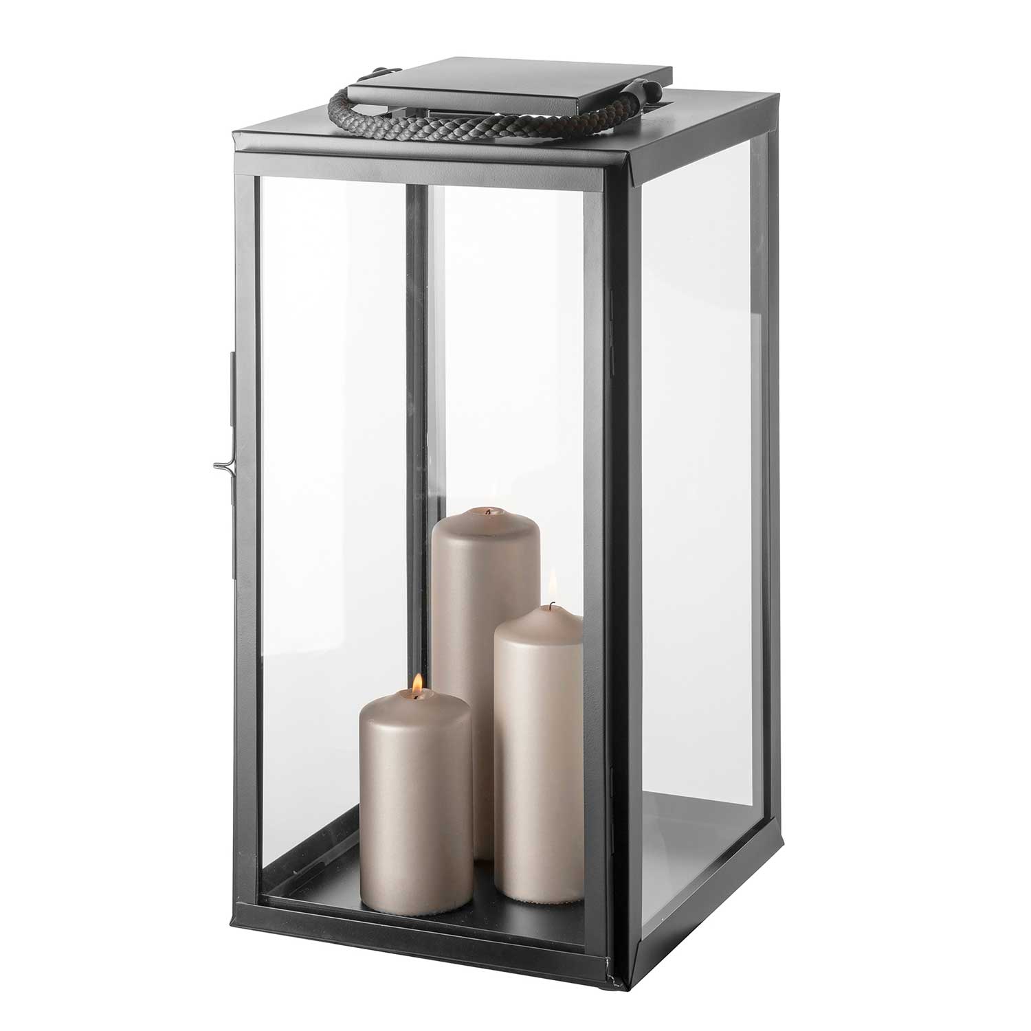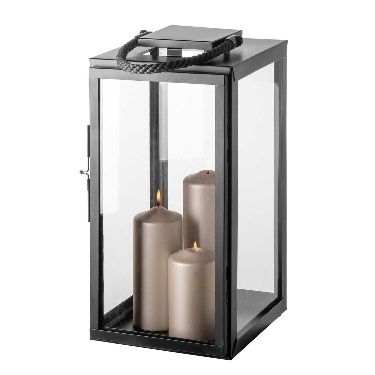 Made of black powder-coated stainless steel, with clear glass inserts, a smoke vent and a woven nylon cord handle, this lantern is more than just a source of light – it is a quiet statement of style.