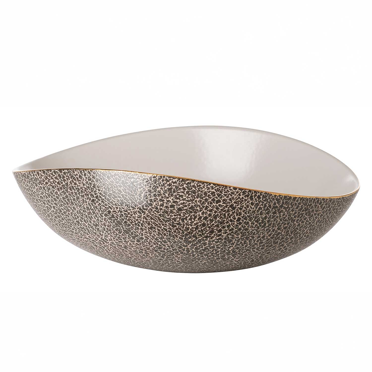 MIDAS porcelain bowl gray with gold rim 33 x 24 cm